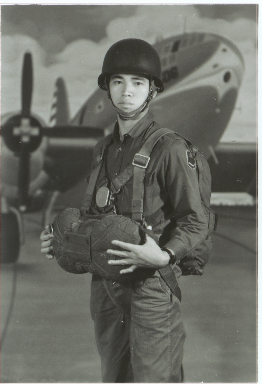 62年 【22年華】的王正賢攝於:屏東大武營傘訓基地•跳了十三次傘,每次傘都有張開歐、屏東務農的一位漂亮姑娘以為: 偶是【天上掉下來的禮物】